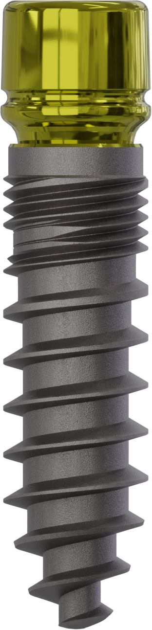 zweiteiliges Implantat | ø 3,5 mm | Länge 12,0 mm inkl. Gingiva-Shuttle. Das zweiteilige Champions (R)Evolution-Implantat ist ein enossales, rotationssymmetrisches Implantat aus Titan Grad 4 (KV). Es kann in allen Knochenqualitäten des Ober- und Unterkiefers (D1–D4) mit und ohne Augmentation eingesetzt werden. Das Implantat ist auf Knochenniveau zu inserieren. Durch unterschiedliche Durchmesser und Längen ist ein weit gefächertes Indikationsspektrum gegeben. Sie eignen sich zur Insertion in den bereits langzeitig abgeheilten Kieferknochen (Spätimplantation), zur verzögerten Insertion (6–8 Wochen nach Zahnextraktion) und zur Sofortimplantation (direkt nach Zahnextraktion – unter entsprechenden Bedingungen). Beachten Sie bitte die Indikationseinschränkungen in der jeweiligen Gebrauchsanleitung. Material: Titan Grad 4 (KV)