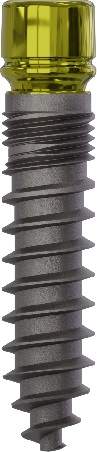 zweiteiliges Implantat | ø 3,5 mm | Länge 14,0 mm inkl. Gingiva-Shuttle. Das zweiteilige Champions (R)Evolution-Implantat ist ein enossales, rotationssymmetrisches Implantat aus Titan Grad 4 (KV). Es kann in allen Knochenqualitäten des Ober- und Unterkiefers (D1–D4) mit und ohne Augmentation eingesetzt werden. Das Implantat ist auf Knochenniveau zu inserieren. Durch unterschiedliche Durchmesser und Längen ist ein weit gefächertes Indikationsspektrum gegeben. Sie eignen sich zur Insertion in den bereits langzeitig abgeheilten Kieferknochen (Spätimplantation), zur verzögerten Insertion (6–8 Wochen nach Zahnextraktion) und zur Sofortimplantation (direkt nach Zahnextraktion – unter entsprechenden Bedingungen). Beachten Sie bitte die Indikationseinschränkungen in der jeweiligen Gebrauchsanleitung. Material: Titan Grad 4 (KV)