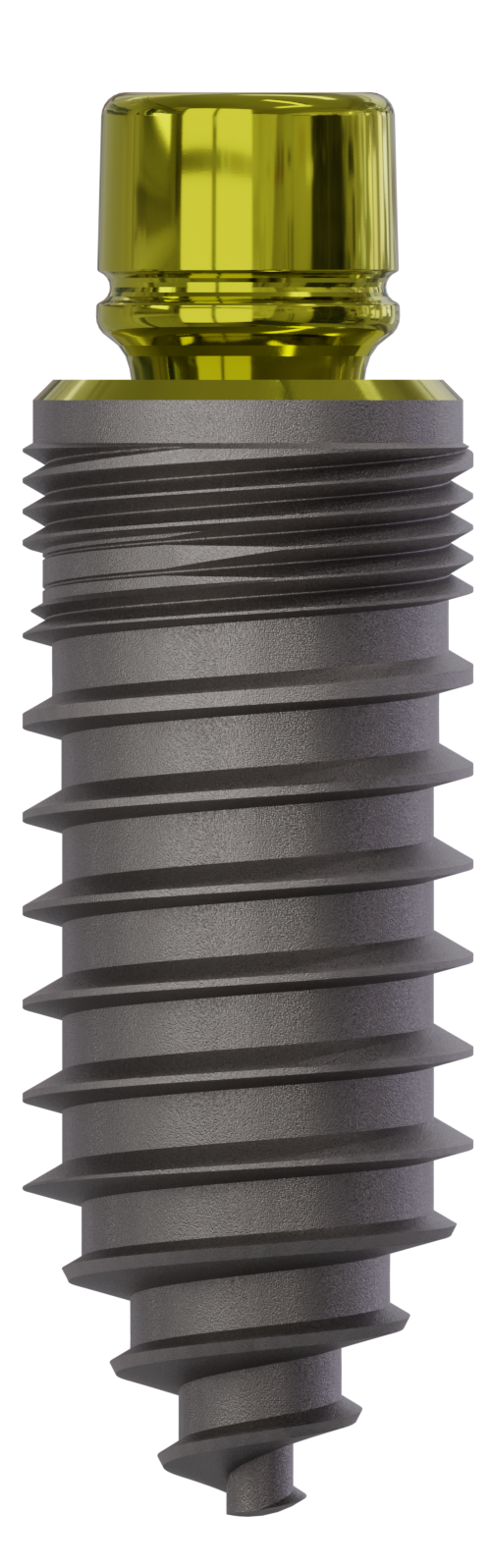 zweiteiliges Implantat | ø 5,5 mm | Länge 14,0 mm inkl. Gingiva-Shuttle. Das zweiteilige Champions (R)Evolution-Implantat ist ein enossales, rotationssymmetrisches Implantat aus Titan Grad 4 (KV). Es kann in allen Knochenqualitäten des Ober- und Unterkiefers (D1–D4) mit und ohne Augmentation eingesetzt werden. Das Implantat ist auf Knochenniveau zu inserieren. Durch unterschiedliche Durchmesser und Längen ist ein weit gefächertes Indikationsspektrum gegeben. Sie eignen sich zur Insertion in den bereits langzeitig abgeheilten Kieferknochen (Spätimplantation), zur verzögerten Insertion (6–8 Wochen nach Zahnextraktion) und zur Sofortimplantation (direkt nach Zahnextraktion – unter entsprechenden Bedingungen). Beachten Sie bitte die Indikationseinschränkungen in der jeweiligen Gebrauchsanleitung. Material: Titan Grad 4 (KV)