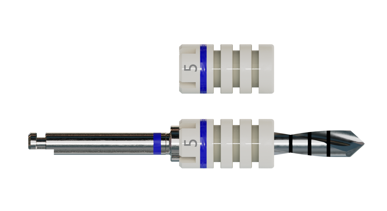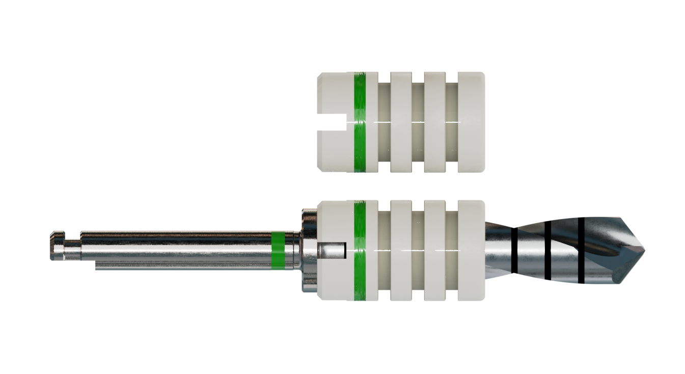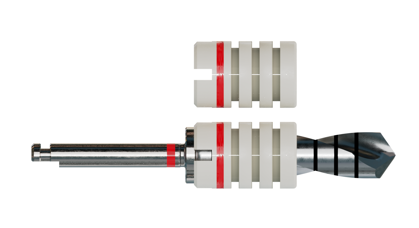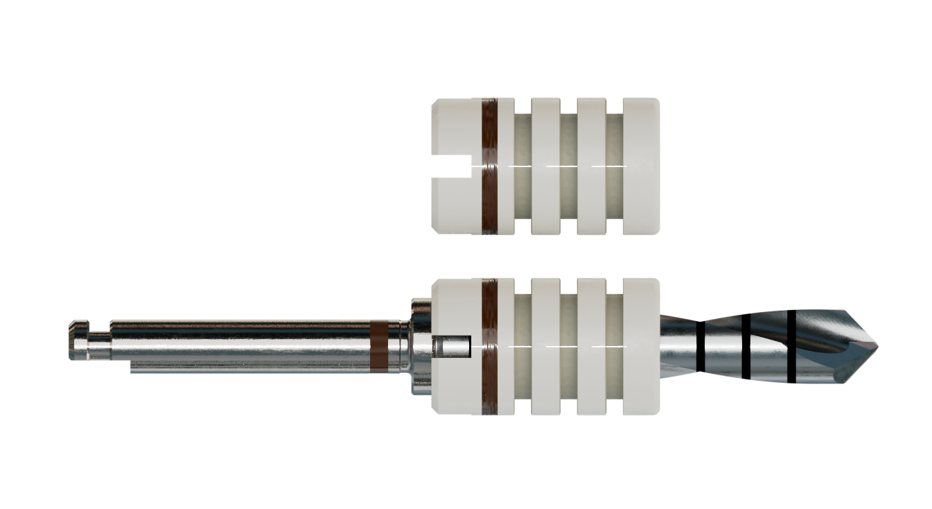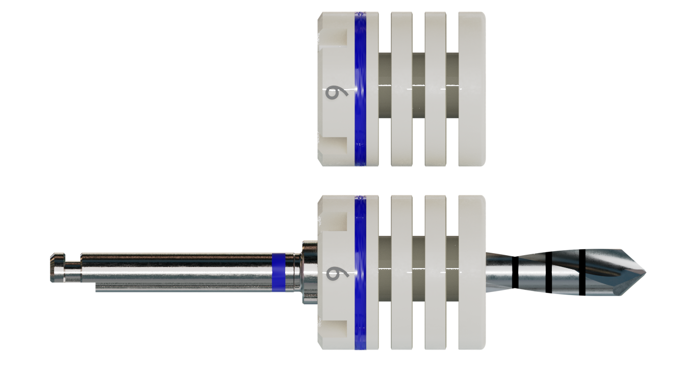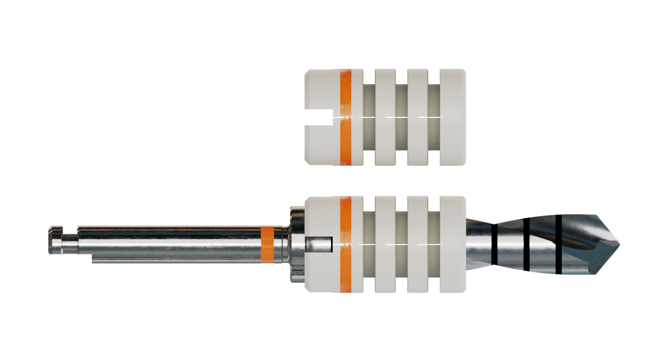 Die Bohrstophülsen bieten zusätzliche Sicherheit und Komfort während der Implantation. Sie sind in Abständen von 2 mm z. B. mit einem Skalpell kürzbar, wobei vorher die Einschubrichtung zu beachten ist. Material: Sterilisierbarer Kunststoff