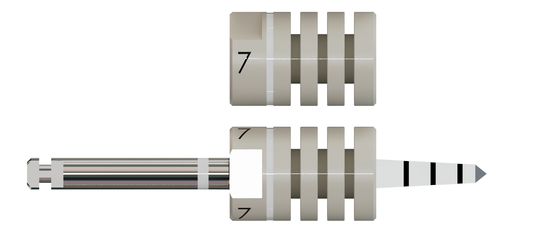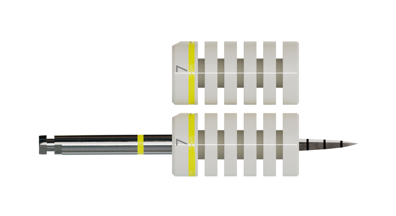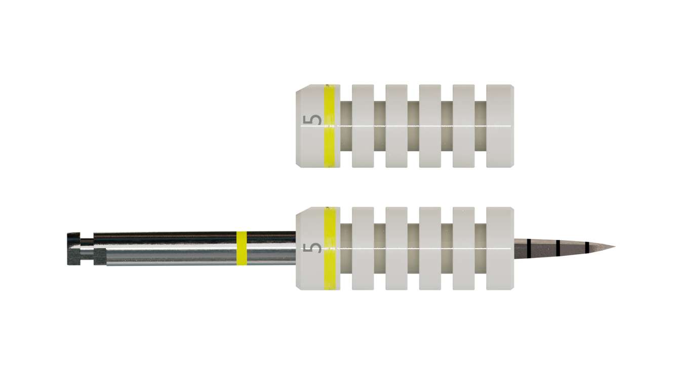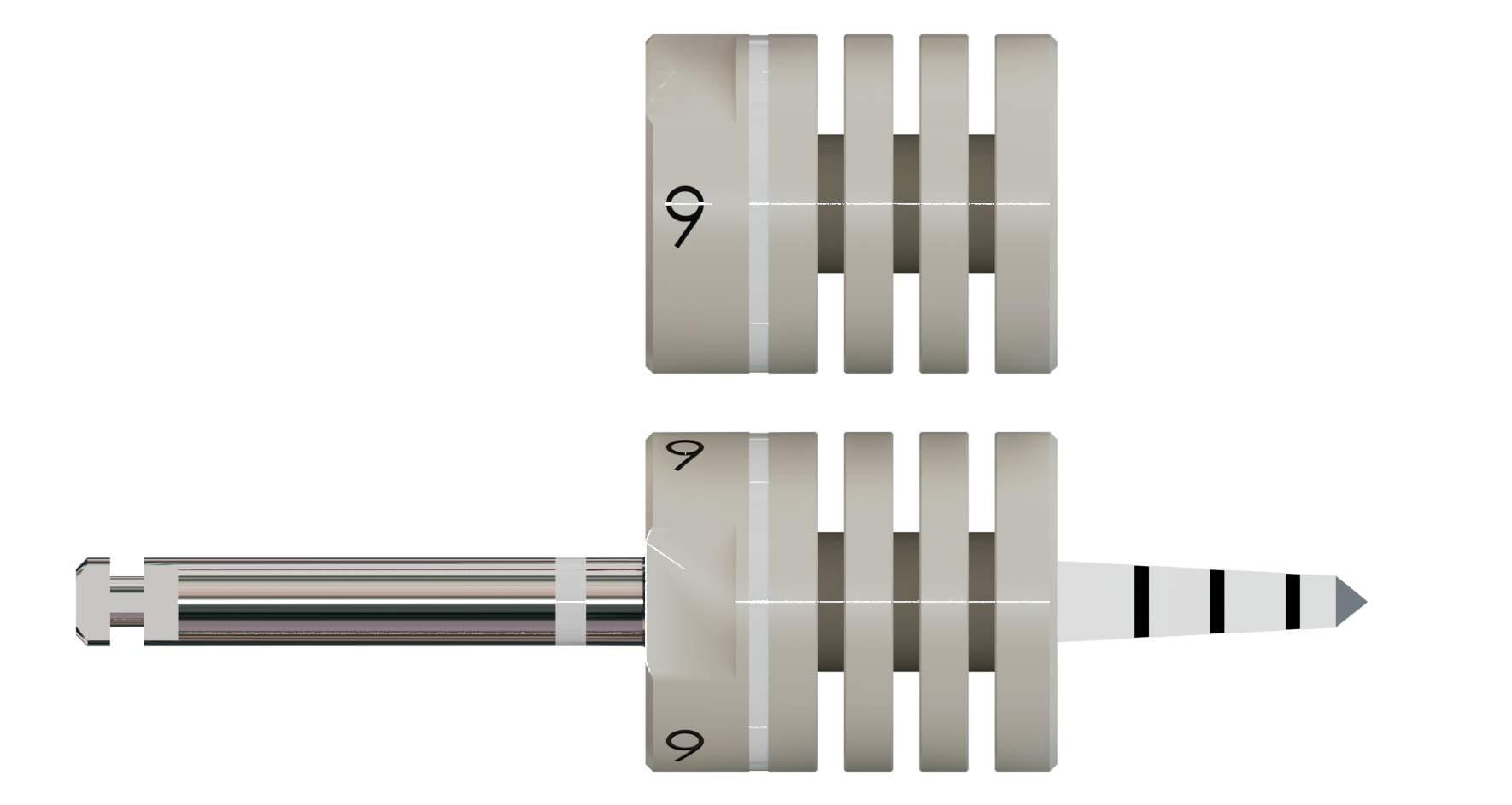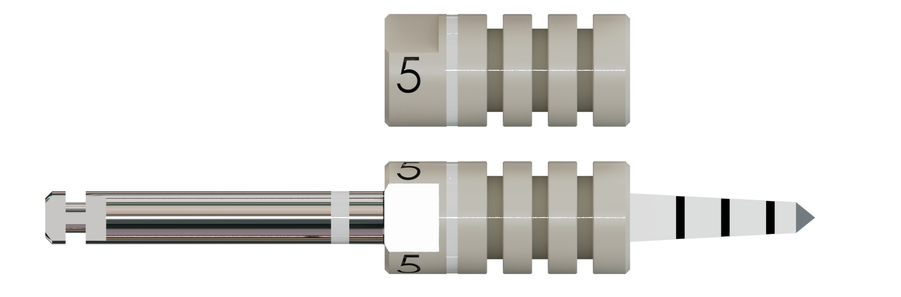 Die Bohrstophülsen bieten zusätzliche Sicherheit und Komfort während der Implantation. Sie sind in Abständen von 2 mm z. B. mit einem Skalpell kürzbar, wobei vorher die Einschubrichtung zu beachten ist. Material: Sterilisierbarer Kunststoff