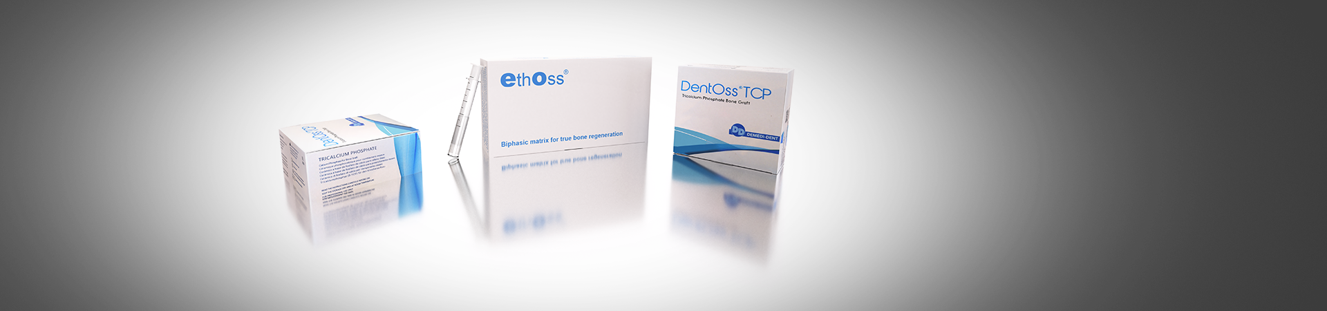 DentOss TCP ist ein synthetisches Knochenersatzmaterial aus phasenreinem Beta-Tricalciumphosphat (ß-TCP). Innerhalb von 4 bis 6 Monaten bildet sich vitales Knochengewebe ohne Restbestandteile. REF CI-D01 DentOss 1 | 0,5g fein (0,1–0,5 mm) REF CI-D02 DentOss 1 | 0,5g grob (0,5–1,0 mm) REF CI-D03 DentOss 5 | 0,5g fein (0,1–0,5 mm) REF CI-D04 DentOss 5 | 0,5g grob (0,5–1,0 mm) REF CI-D05 DentOss 1 | 1,0g fein (0,1–0,5 mm) REF CI-D06 DentOss 1 | 1,0g grob (0,5–1,0 mm) REF CI-D07 DentOss 5 | 1,0g fein (0,1–0,5 mm) REF CI-D08 DentOss 5 | 1,0g grob (0,5–1,0 mm)
