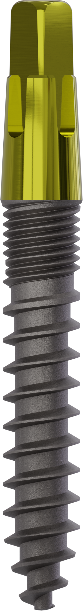 Vierkant-Implantat New Art | ø 3,0 mm | Länge 16,0 mm. Das Champions Vierkant-Implantat ist ein enossales, rotationssymetrisches Implantat aus Titan Grad 4 (KV). Es kann in allen Knochenqualitäten des Ober- und Unterkiefers (D1–D4) mit und ohne Augmentation eingesetzt werden. Durch unterschiedliche Durchmesser und Längen ist ein weit gefächertes Indikationsspektrum gegeben. Sie eignen sich zur Insertion in den bereits langzeitig abgeheilten Kieferknochen (Spätimplantation), zur verzögerten Insertion (6–8 Wochen nach Zahnextraktion) und zur Sofortimplantation (direkt nach Zahnextraktion – unter entsprechenden Bedingungen). Beachten Sie bitte die Indikationseinschränkungen in der jeweiligen Gebrauchsanleitung. Material: Titan Grad 4 (KV)