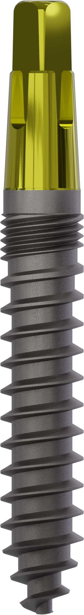 Vierkant-Implantat New Art | ø 3,5 mm | Länge 18,0 mm. Das Champions Vierkant-Implantat ist ein enossales, rotationssymetrisches Implantat aus Titan Grad 4 (KV). Es kann in allen Knochenqualitäten des Ober- und Unterkiefers (D1–D4) mit und ohne Augmentation eingesetzt werden. Durch unterschiedliche Durchmesser und Längen ist ein weit gefächertes Indikationsspektrum gegeben. Sie eignen sich zur Insertion in den bereits langzeitig abgeheilten Kieferknochen (Spätimplantation), zur verzögerten Insertion (6–8 Wochen nach Zahnextraktion) und zur Sofortimplantation (direkt nach Zahnextraktion – unter entsprechenden Bedingungen). Beachten Sie bitte die Indikationseinschränkungen in der jeweiligen Gebrauchsanleitung. Material: Titan Grad 4 (KV)