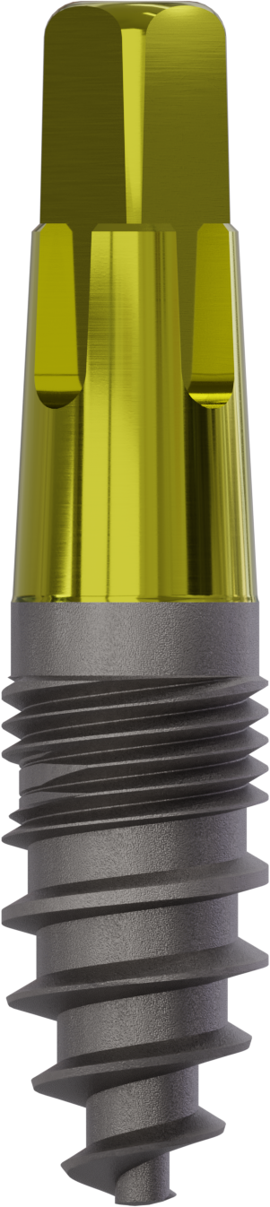 Vierkant-Implantat New Art | ø 3,5 mm | Länge 8,0 mm. Das Champions Vierkant-Implantat ist ein enossales, rotationssymetrisches Implantat aus Titan Grad 4 (KV). Es kann in allen Knochenqualitäten des Ober- und Unterkiefers (D1–D4) mit und ohne Augmentation eingesetzt werden. Durch unterschiedliche Durchmesser und Längen ist ein weit gefächertes Indikationsspektrum gegeben. Sie eignen sich zur Insertion in den bereits langzeitig abgeheilten Kieferknochen (Spätimplantation), zur verzögerten Insertion (6–8 Wochen nach Zahnextraktion) und zur Sofortimplantation (direkt nach Zahnextraktion – unter entsprechenden Bedingungen). Beachten Sie bitte die Indikationseinschränkungen in der jeweiligen Gebrauchsanleitung. Material: Titan Grad 4 (KV)