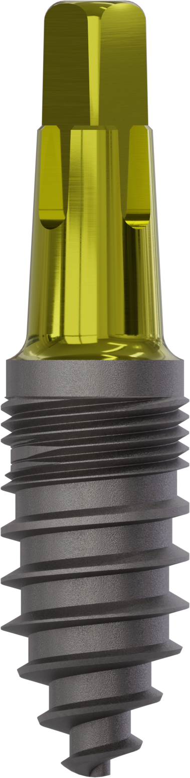 Vierkant-Implantat New Art | ø 4,5 mm | Länge 10,0 mm. Das Champions Vierkant-Implantat ist ein enossales, rotationssymetrisches Implantat aus Titan Grad 4 (KV). Es kann in allen Knochenqualitäten des Ober- und Unterkiefers (D1–D4) mit und ohne Augmentation eingesetzt werden. Durch unterschiedliche Durchmesser und Längen ist ein weit gefächertes Indikationsspektrum gegeben. Sie eignen sich zur Insertion in den bereits langzeitig abgeheilten Kieferknochen (Spätimplantation), zur verzögerten Insertion (6–8 Wochen nach Zahnextraktion) und zur Sofortimplantation (direkt nach Zahnextraktion – unter entsprechenden Bedingungen). Beachten Sie bitte die Indikationseinschränkungen in der jeweiligen Gebrauchsanleitung. Material: Titan Grad 4 (KV)