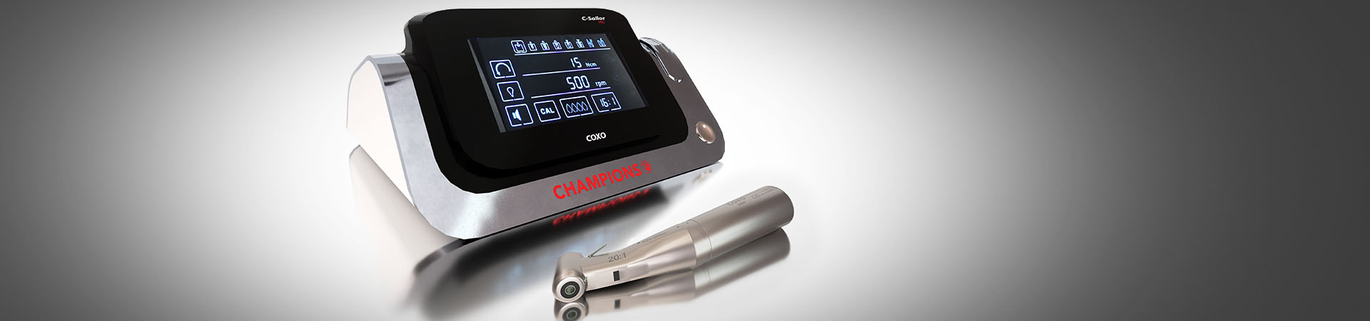 Equipped with a light motor in the handpiece, the implant motor is user-friendly via a touch-screen and an integrated water supply and allows maximum freedom while working. Scope of supply: 1 | Implant Motor with touch screen 1 | Handpiece (green 20:1) with LED lighting and tray 1 | Multi-functional pedal Delivery in a high-quality aluminium box