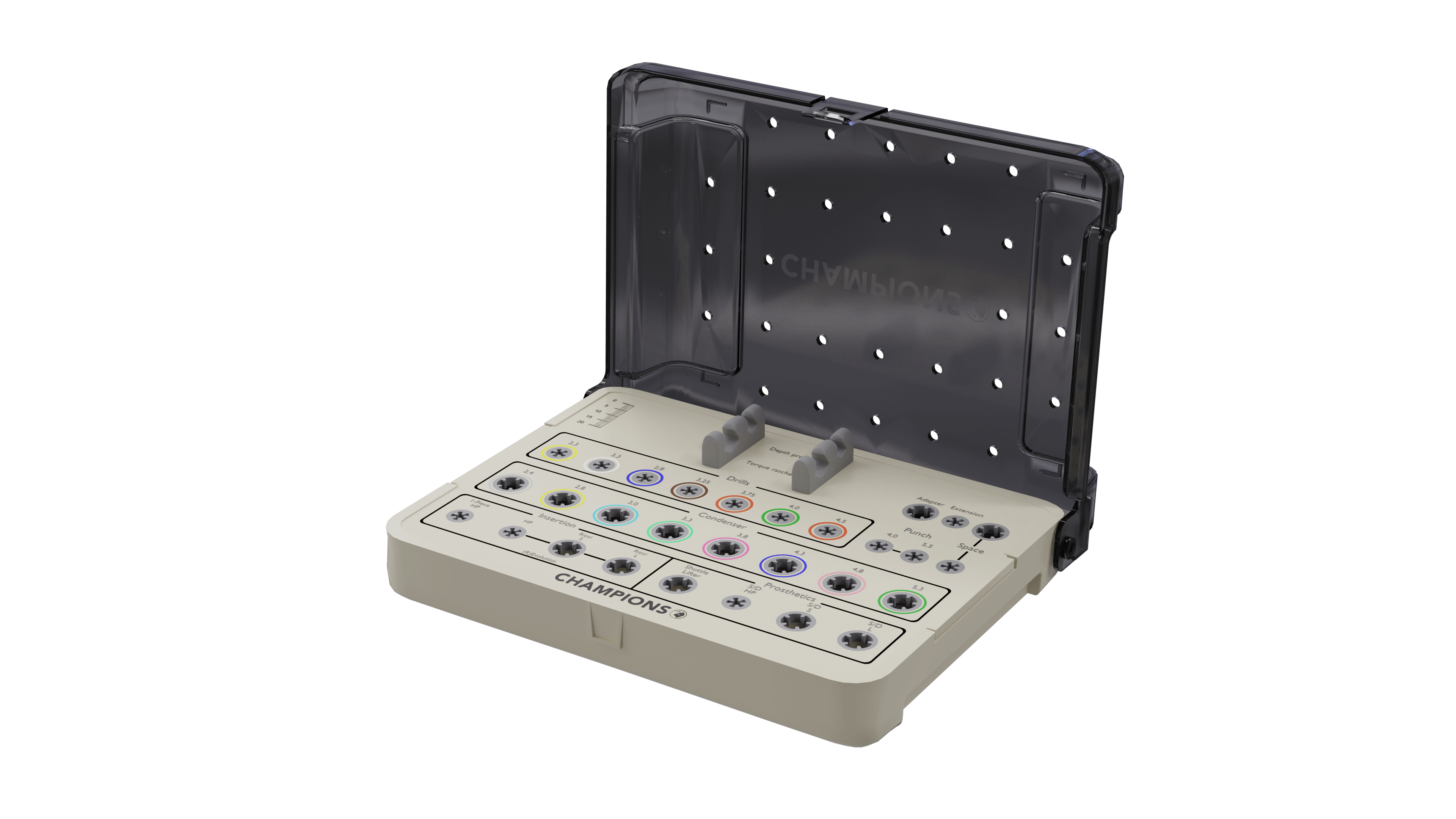 It can be sterilized to keep drills, spreaders, insertion tools and the torque wrench