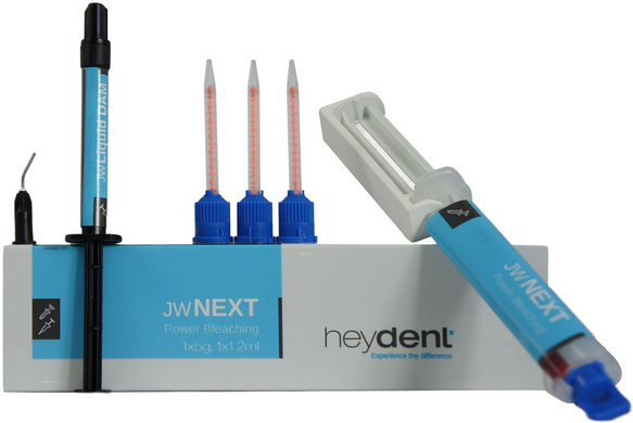 JW Power Bleaching NEXT is the next generation of the proven JW Power Bleaching Gel for Lasers. The NEXT generation is easier to apply due to a double cartridge and a mixing tip and can now be activated by laser, lamp and even without a light source. JW Power Bleaching NEXT is a two-component chair-side bleaching gel in a double-bar cartridge with 35 % content of active ingredient (hydrogen peroxide) for quick bleaching and brightening of discolored and devitalized teeth. JW Power Bleaching Next can be used without any light source but gets better results with lamps and best with a lasers.
